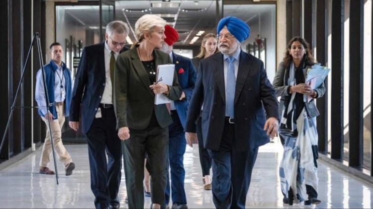 केंद्रीय पेट्रोलियम और प्राकृतिक गैस मंत्री हरदीप सिंह पुरी और अमेरिका के उर्जा सचिव जेनिफर ग्रानहोम के बीच द्विपक्षीय